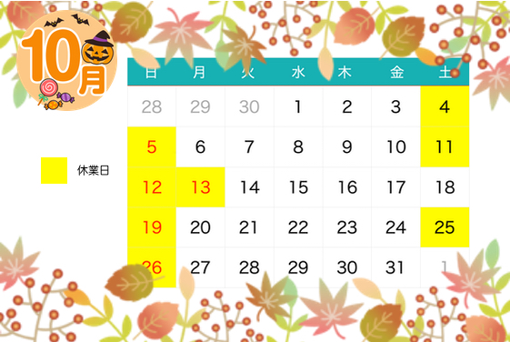 10月休業日のお知らせ
