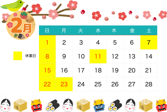 2月休業日のお知らせ